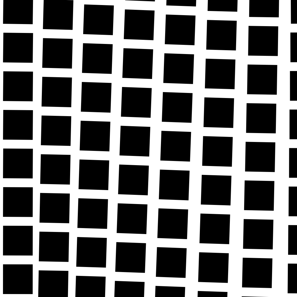 Inspired by Bridget Riley’s works. I started experimenting with squares that are slightly rotated and tiled, which creating some weird optical illusion when moved.